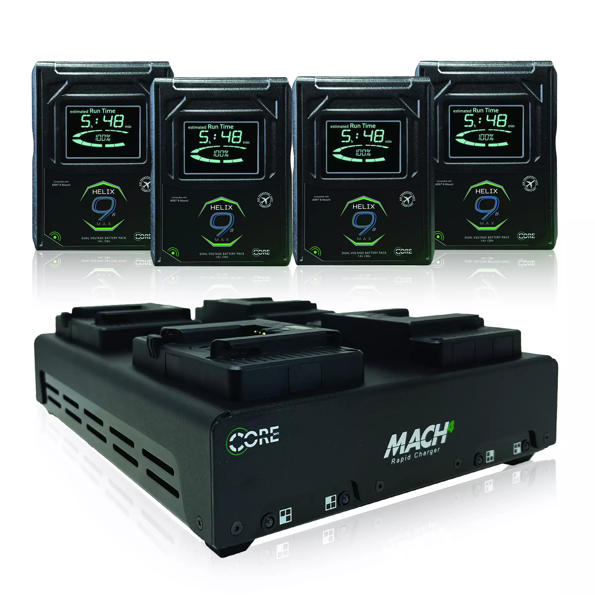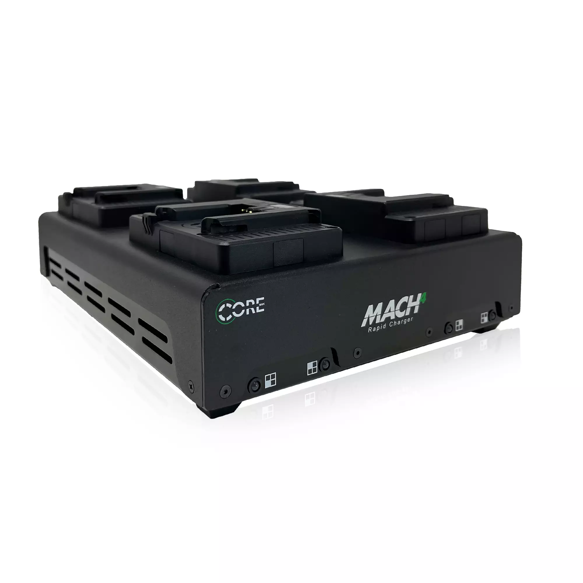 Featuring four independent charge bays, the Core SWX MACH4 Charger is capable of charging four batteries simultaneously by focusing on each individually. Offering the fastest charge speed on the market, the charger can completely charge four 98Wh batteries in approximately 90min.
