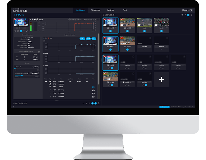 Haivision StreamHub is a powerful broadcast-grade receiver that decodes and distributes live video streams coming from any