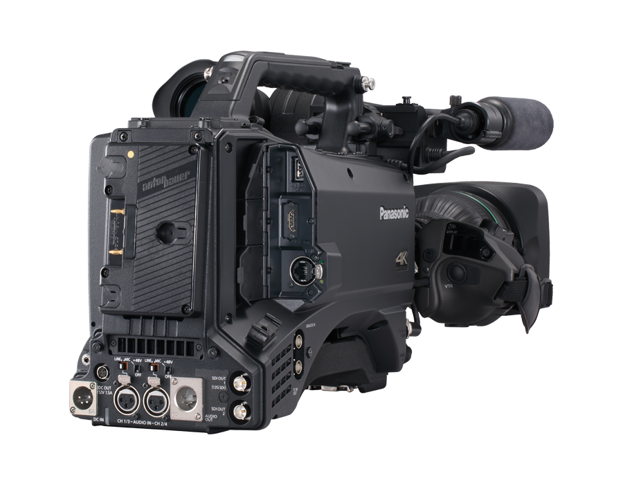 Equipped with a large 11.14 M-pixel image sensor that provides a 4K high horizontal resolution of 2000 TV lines and HDR (V-log/HLG) gamma. A light workflow can be achieved with HEVC codec that records 4K 10 bits with high efficiency and the high-speed transfer express P2 card. Furthermore, innovative network solutions are provided with the 4K/SRT-compatible direct streaming function and NDI®|HX-compatible*1 IP connection function.