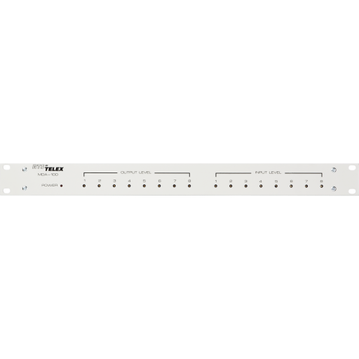 The MDA-100 mixing and distribution amplifier contains an 8x1-summing amplifier (mixer) and a 1 x 8 distribution amplifier in a case that is one rack unit high. The MDA-100 is useful, for example, in camera control (CCU), where multiple camera operators have to talk and listen to one master control location. In this application, audio from each camera (up to eight) is fed to one of the summing amplifier inputs of the MDA-100.