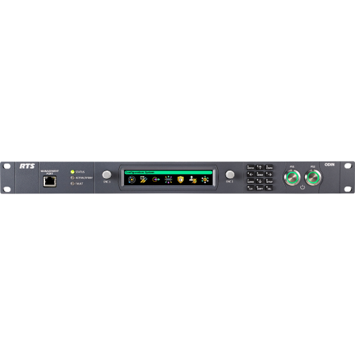 The ODIN Digital Intercom is a highly scalable intercom system in a 1RU (Rack Unit) package. As your capacity needs to evolve, a single ODIN can grow from 16 ports to a maximum of 128 ports. A maximum of eight ODIN units can be interconnected via an optical Inter-Frame Link creating a single matrix with up to 1024 ports. The total number of licensed ports may be allocated freely to any port hardware type supported by the unit.