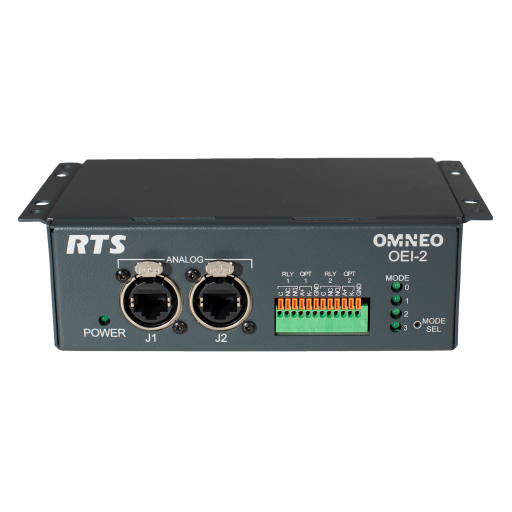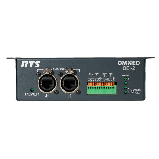 The OEI-2 enables connectivity between analog audio sources and legacy RTS keypanels and an OMNEO network. This allows users to maintain existing infrastructure and the equity of their original equipment investment while updating to high-performance OMNEO media networking architecture. Utilizing standard IP Ethernet infrastructure, OMNEO-equipped products can be assembled into networks of 2 to 10,000 cooperating devices that share common control systems. OMNEO sets new industry standards for audio communications by offering unparalleled scalability and future-proof expandability; studio-quality synchronized multichannel audio;the most robust, reliable, and secure control protocol suite available; ultra-low latency; and the support of DHCP protocols. The compact, mountable OEI-2 is designed for quick installation and easy operation, and supports all RTS analog keypanels.