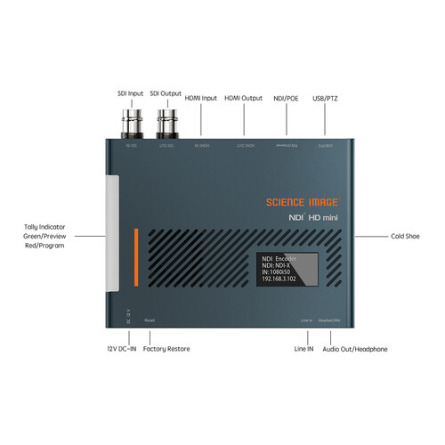 Switch Full NDI encoding and decoding with one key; Support 3G-SDI and HDMI 4K30 or below any SMPTE standard format input; Full NDI encodes and decodes exact original image color and sharpness, low latency, broadcast-grade metrics, flexible UDP features, integrated TALLY, audio embed/unembed and call capabilities, flexible live applications and networking, enabling your team to quickly build an IP broadcast-grade studio with high efficiency and low cost Flexible deployment, convenient and practical