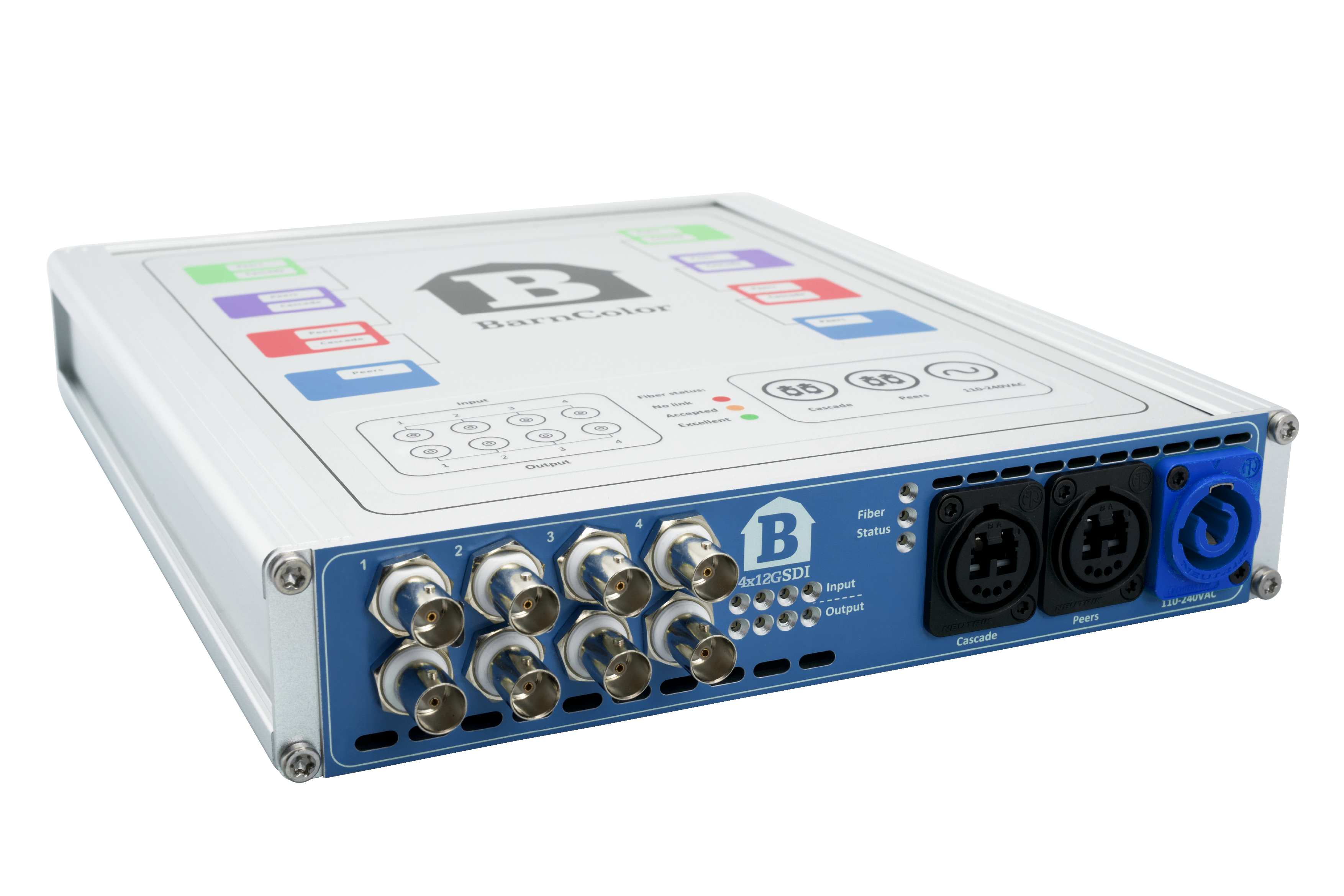 Designed to be a cost-effective and easy-to-deploy solution for transmitting multiple video signals both directions on a single fiber cable. BarnColor allows you to handle up to 32 x 3G-SDI signals (16 forward and 16 returns). Each BarnColor device handles up to 8 signals (4 forward and 4 returns) and up to 4 different colors of BarnColors can be daisy chained. This flexible system is easy to install, upgrade and use. It is well suited for both fixed and temporary installations.