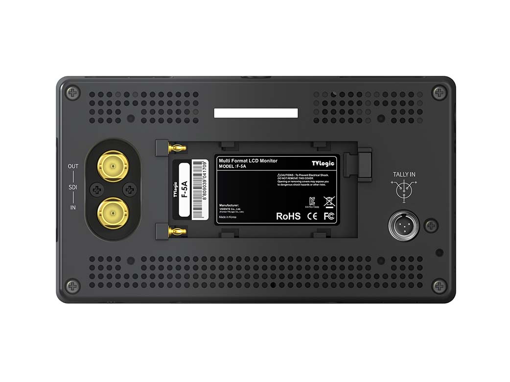 The F-5A is a compact and light-weight field production monitor with Full HD resolution of 1920 x 1080, nice viewing angle and max luminance of 500nit. Equipped with a new image processing engine, F-5A reproduces even better sharpness and peaking boost capability for focus pullers. It also supports various video formats via 3G-SDI and HDMI 1.3 interface. And also support professional features such as Waveform/Vectorscope, Focus Assist, 3D LUT import, Camera Logs and HDR emulation.