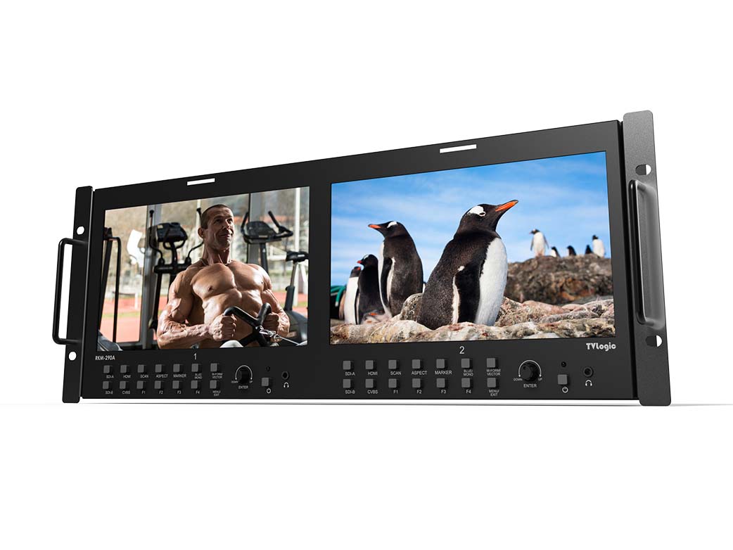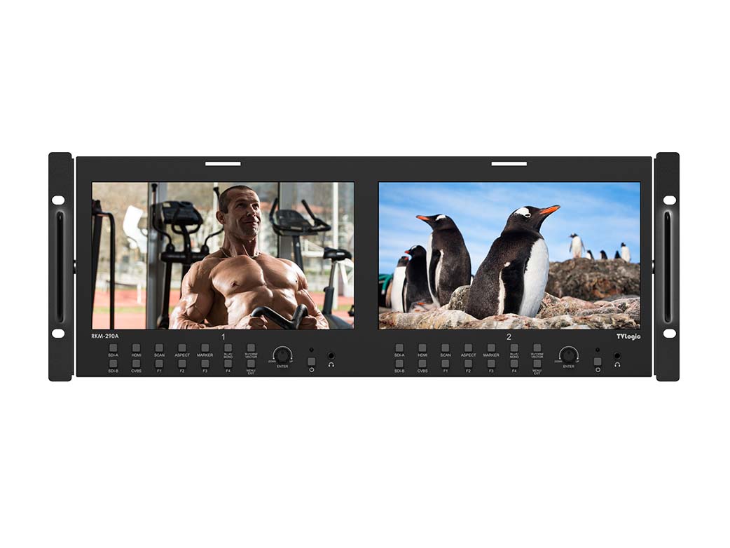 A rack-mount monitor with 2 × 9" LCD screens. which has the same high performance display as LVM-095W-N with full HD resolution and wide viewing angle capability. It supports SDI in/out and HDMI input.