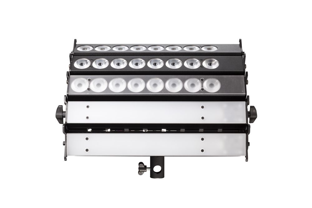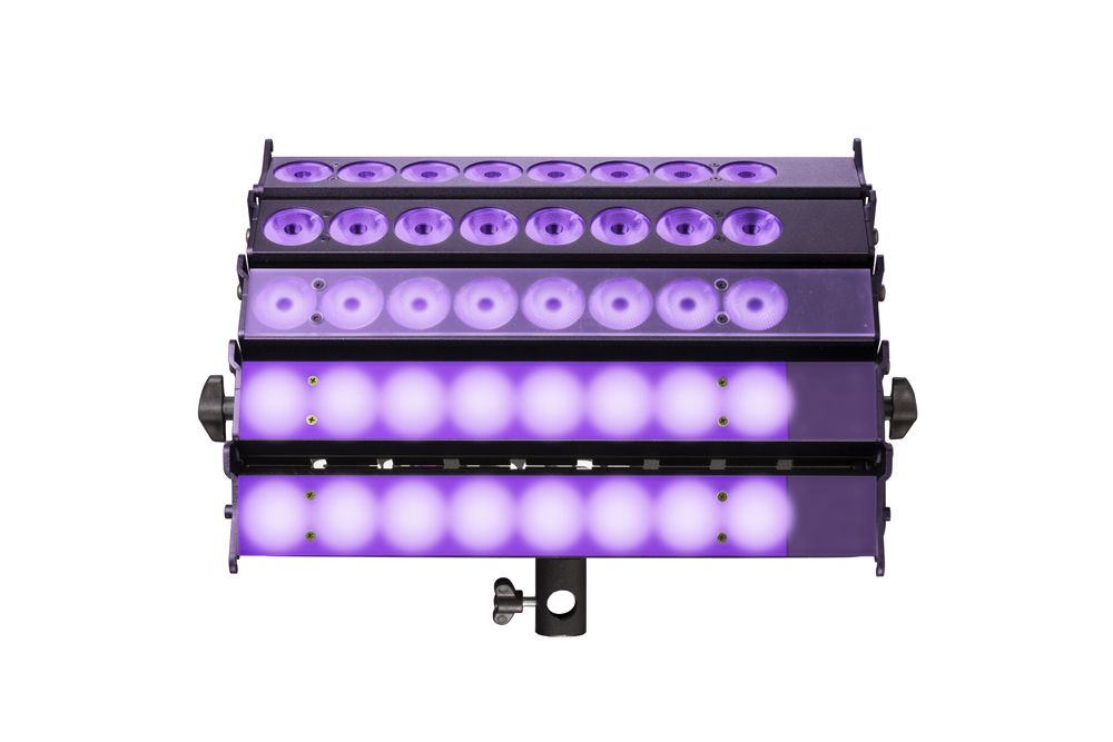 VELVET CYC are cyclorama and wash RGBW asymmetrical fixtures specially designed to evenly wash backgrounds and to create not only any homogeneous color but also horizontal gradient color effects thanks to their multiple light engines. Every VELVET CYC consents the individual control of each of its battens.